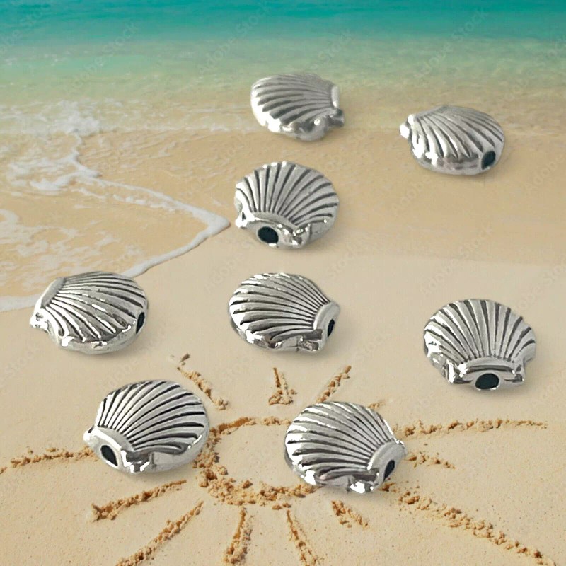 exceptionalbeauty 20 Tibetan Antiqued Silver 9x8mm Two Sided Ocean Clam Scallop Shell Spacer Beads