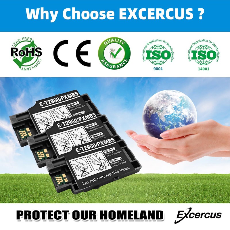 - 【Certified】EXCERCUS Remanufactured C13T295000 Ink Maintenance Box are all under ISO9001, ISO14001 and RoHS Certified. Strict testing before delivery from factory, Reliable Quality.