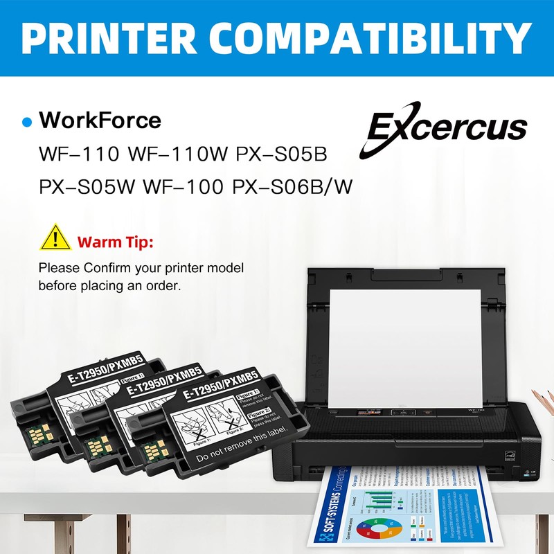 - 【Compatible Printers】EXCERCUS T2950 Ink Maintenance Box Compatible for PX-S05B/S05W/WF-100/PX-S06B/W WF-110/WF‑110W Printers.Please confirm your printer model before placing your order.