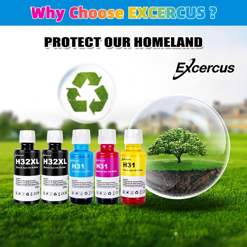 • 【Package Contentst】:EXCERCUS 2 x 135ml 32XL Black ink; 1 x 70ml 31 Cyan ink; 1 x 70ml 31 Magenta ink; 1 x 70ml 31Yellow ink. Total 5-Pack HP 31 32XL ink.TIPS: Please confirm your Printer Model to ensure that you purchase the correct ink bottle.