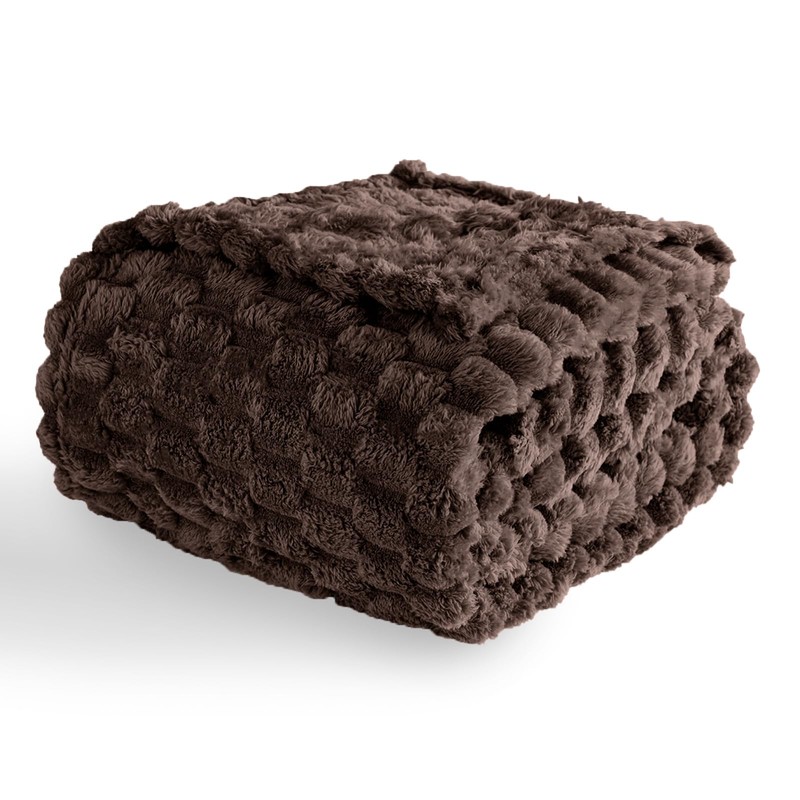 Excervent Flannel Fleece Throw Blanket(50x70 inches), Big 3D Clouds Stylish Hexagon Jacquard Decorative Fuzzy Blankets for Household, Camping, and Travel, Super Soft Cozy, Brown