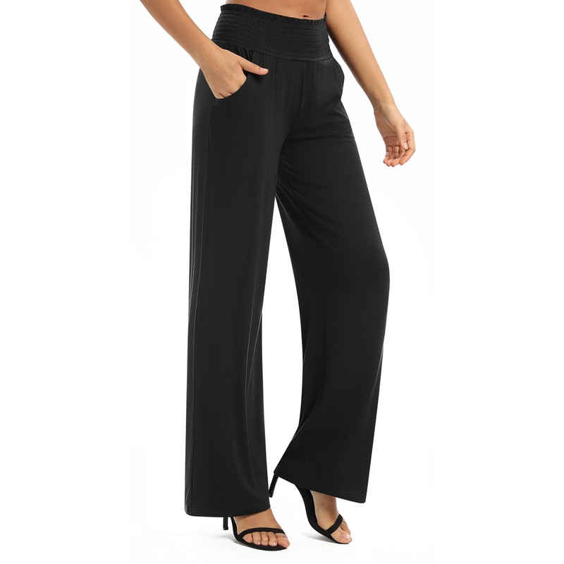 - STRTCH & COMFORT: Fabric feels soft to the touch, drapes, retains shape and doesn't wrinkle easily. Wide-leg flared pants provide high-waisted stretch and a comfortable, free-leg feel to shape your legs