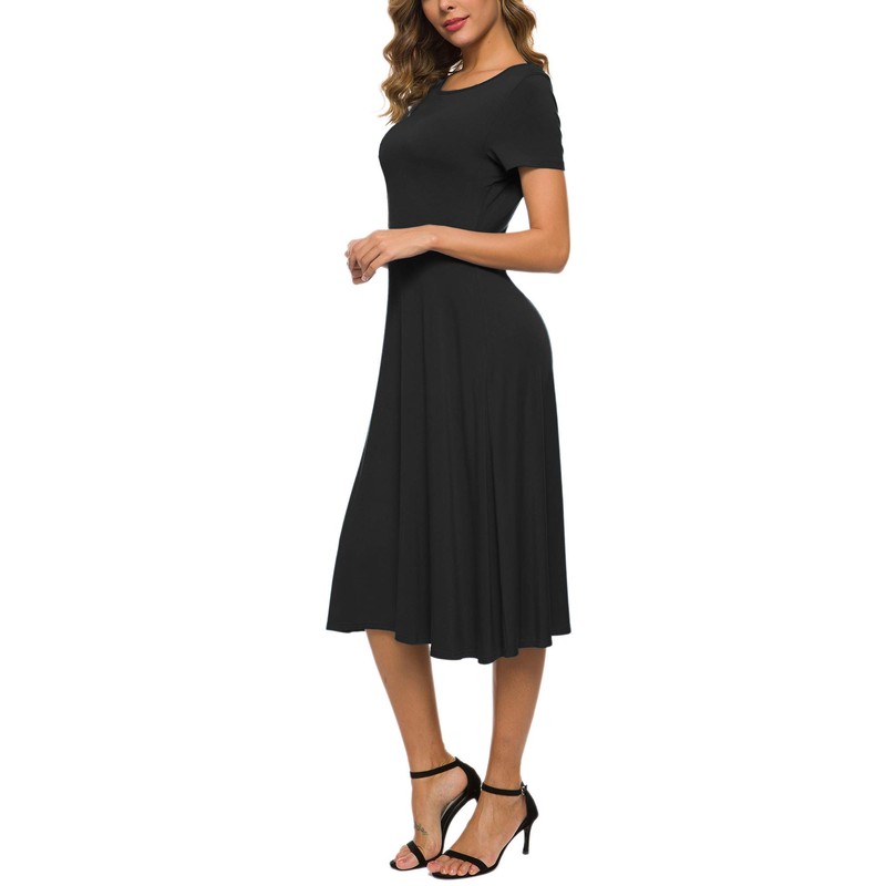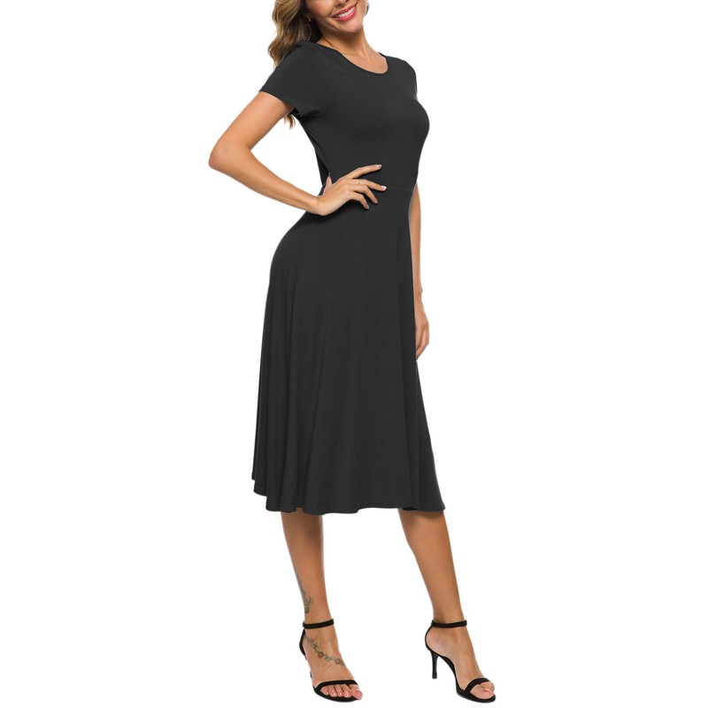 EXCHIC Women's Short Sleeve Round Neck Waisted Slim Summer Midi Dress (XL, Black)