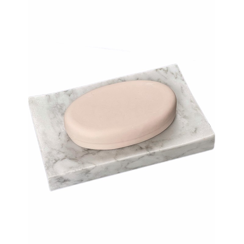 EXCHUES Natural Marble Soap Dish for Shower Silicone Non-Slip Feet, Stone Drying Tray, Bar Soap Saver, Holder Container for Bathroom Home Decor Accessories(Calacatta White, Rectangular)