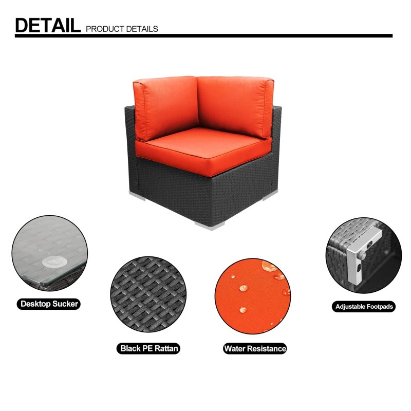 EXCITED WORK Orange 2 Pieces Patio Sectional Corner Sofa Wicker Rattan Couch Set