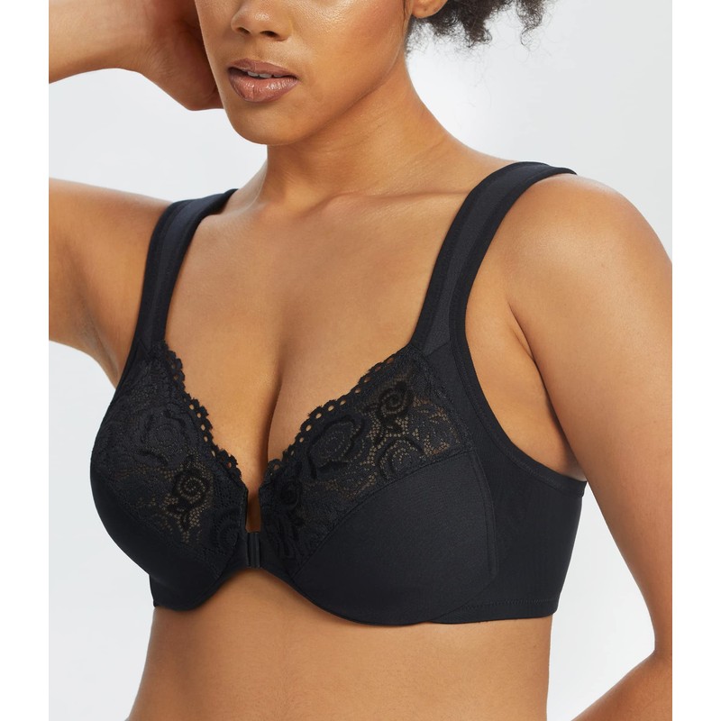Exclare Front Closure Bra for Women Plus Size Full Coverage Underwire Unpadded Lace Comfortable Brassiere(Black, 42DD)