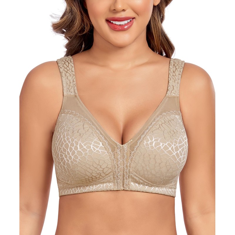 Exclare Women's Front Closure Posture Back Full Coverage Wirefree Everyday Bra(40C, Beige)