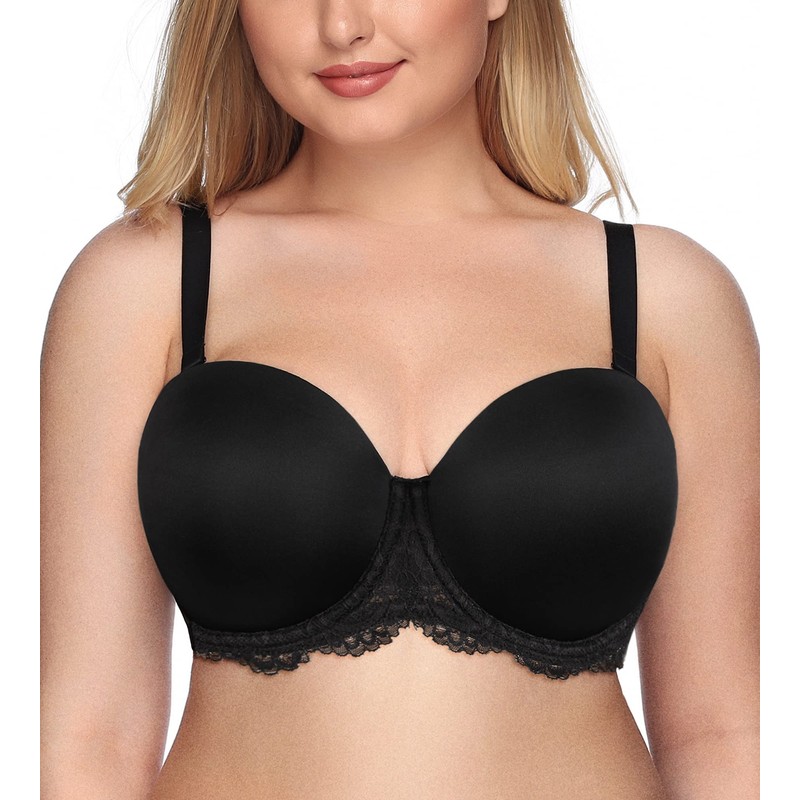 Exclare Women's Strapless Bra Full Coverage Plus Size Underwire Padded Anti-Slip Multi-Way Contour Convertible Lace(38DDD, Lace Black)