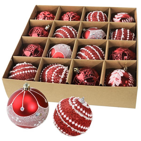 Exclusive Christmas Tree Baubles Set of 16 Shatterproof Elegant & Decorative Shiny Baubles in Red and Champagne with Sparkling Details Perfect Christmas Tree Decorations for Festive Christmas