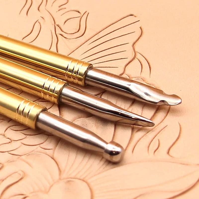 Exclusive Modeling Tools For Advance Leather Figure Carving with 6 Stylus Head Swivel Knife & Leather Stamp Helper Tools 3 Brass Steel