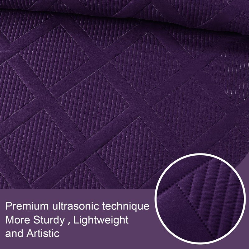 Exclusivo Mezcla Cal King Size Quilt Set with Modern Striped Pattern, 3 Pieces Summer Oversized Lightweight Deep Purple Quilts Bedding Set, Soft Bedspreads Coverlets for All Seasons