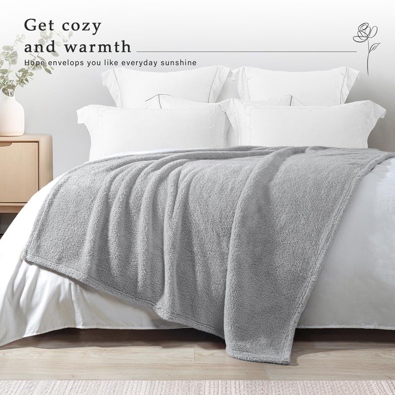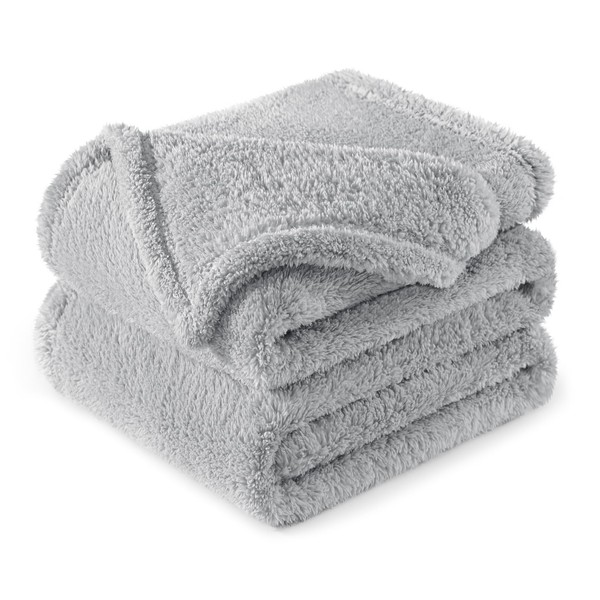 Exclusivo Mezcla Cuddly Fleece Blanket for Sofa, Fluffy Cuddly and Warm Blanket, Plush Blanket for All Seasons, 130 x 150 cm, Light Grey