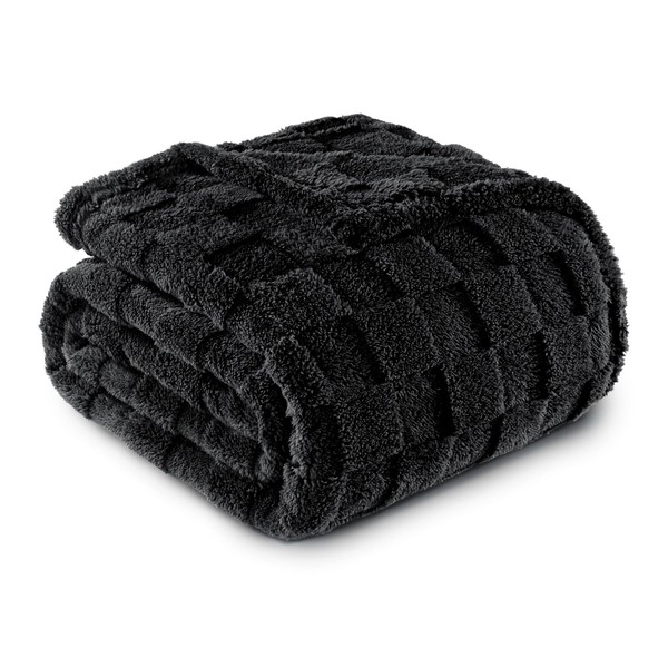 Exclusivo Mezcla King Size Flannel Fleece Blanket, Super Soft and Warm Lightweight Checkered Pattern Blankets for All Seasons, 90x104 Inches, Black