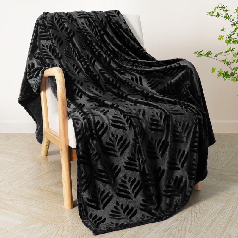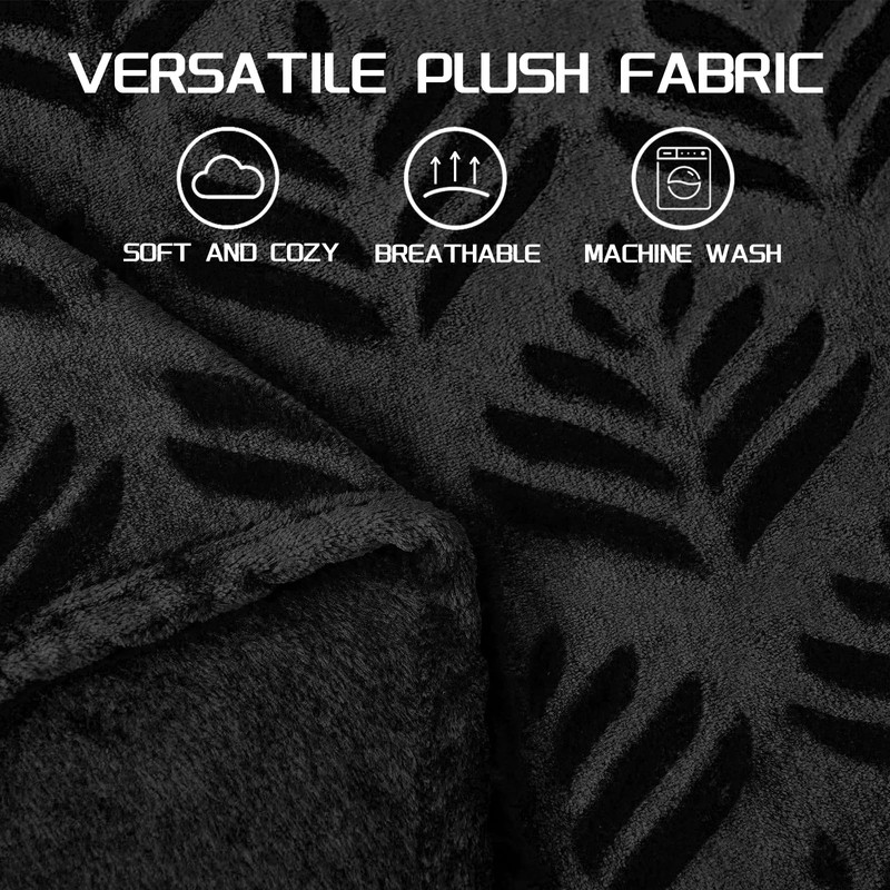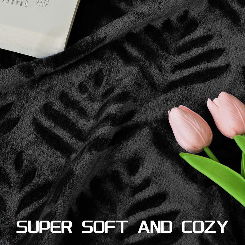Exclusivo Mezcla King Size Fleece Blanket for Bed, Super Soft and Cozy Blankets All Season Use, Leaves Pattern, Plush Fuzzy Lightweight, Black, 90x104 Inch
