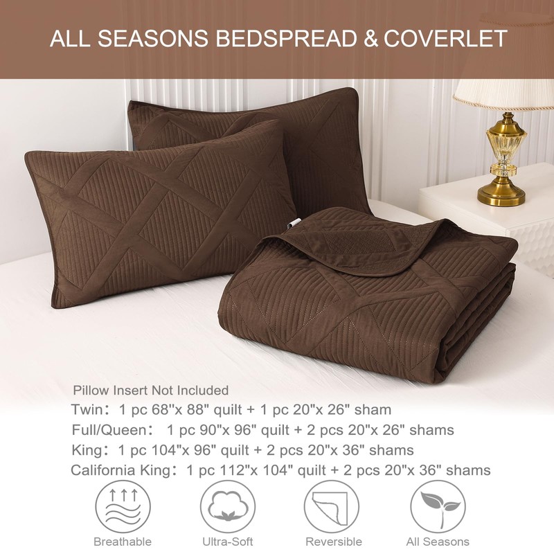 Exclusivo Mezcla King Size Quilt Set with Modern Striped Pattern, 3 Pieces Summer Lightweight Brown Quilts Bedding Set, Soft Bedspreads Coverlets for All Seasons