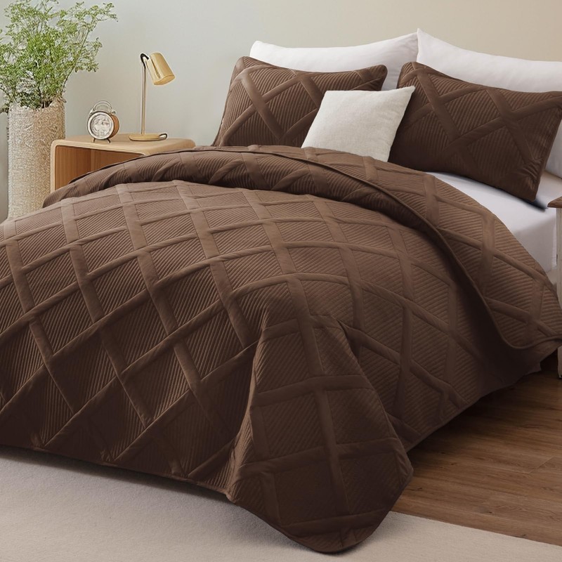 - Exquisite Home Elegance Redefined: The basket-weave patterns on our king bedspreads born from the artistry of ultrasonic high-temperature embossing technology, not only lend an unparalleled sturdiness but also embrace a feather-light touch, ensuring comfort without compromise. Minimalist diamond-striped pattern creates a visual symphony that effortlessly blends with your bedroom's decor. It's a statement piece that imbues your space with an air of sophistication and classic charm