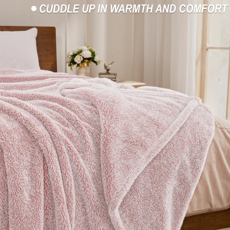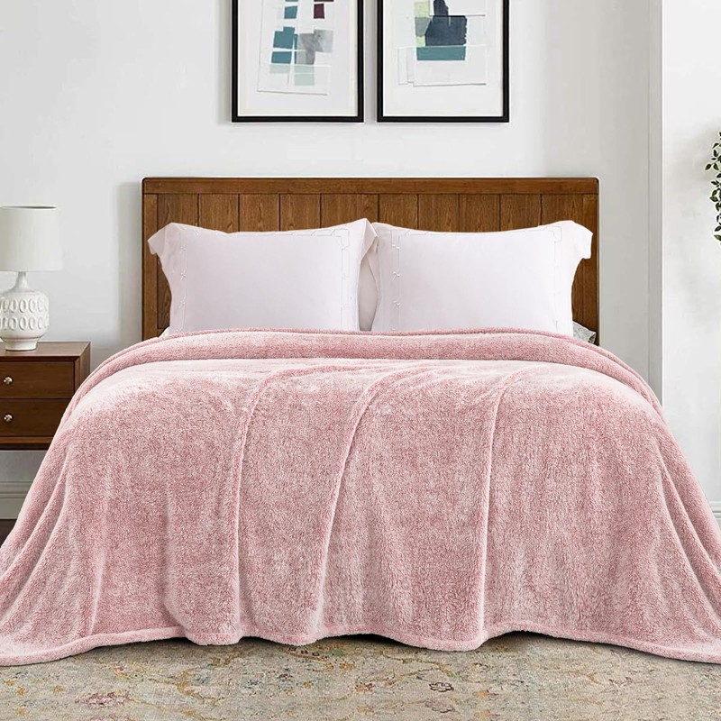 Exclusivo Mezcla Plush Fuzzy Fleece Bed Blanket King Size, Super Soft, Fluffy and Warm Blankets, Suitable for All Seasons (Mixed Pink, 90x104 Inches)