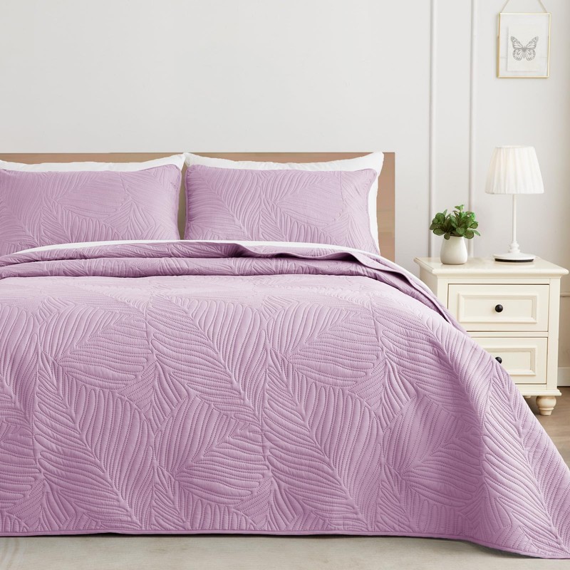 - Ultrasonic Leaf Pattern: The twin size quilt sets feature exquisite leaf patterns quilted with ultrasonic high temperature embossing technology which makes the quilts more sturdy and lightweight. With a variety of solid colors, extended leaf pattern twin bedspread is a wonderful choice for home decor
