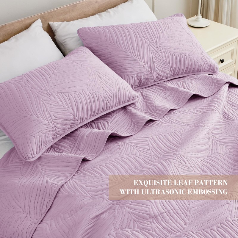 Exclusivo Mezcla Twin Quilt Bedding Set, Lightweight Lilac Quilts Twin Size for All Seasons, Soft Microfiber Bedspreads Coverlets Bed Cover with Leaf Pattern, 2 Piece