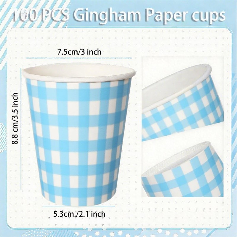 - Great Value Bulk: Package includes 100 gingham pattern paper cups, providing enough cute paper cups for a variety of occasions such as parties, birthday parties, picnics, and outdoor events; you don't have to worry about running out of paper cups; you can easily host a large number of guests, as well as serve as a variety of beautiful farmers' market decorations!