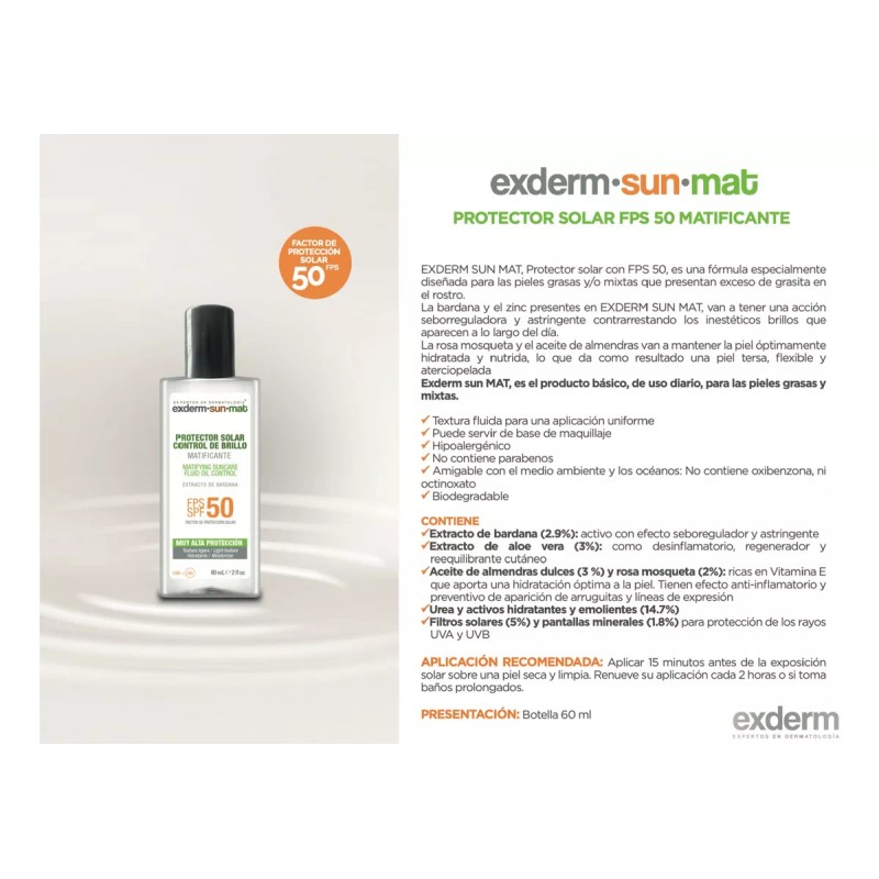 Exderm Protector Solar Fps50 Control De Brillo Matifica 60ml