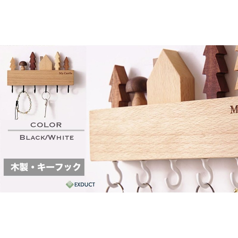 EXDUCT Wall Hanging Hook, Wooden Key Hook, Key Stand, Key Storage, Key Case, Wall Hook, Key Holder, Hat Hang, Screws Included (Black)