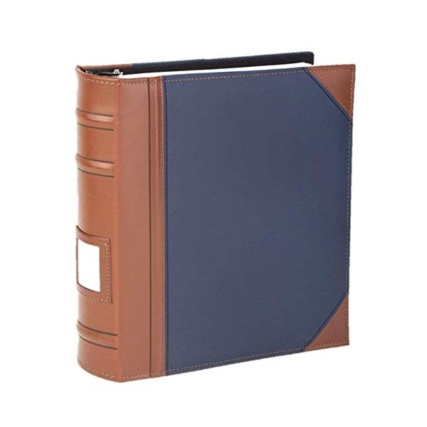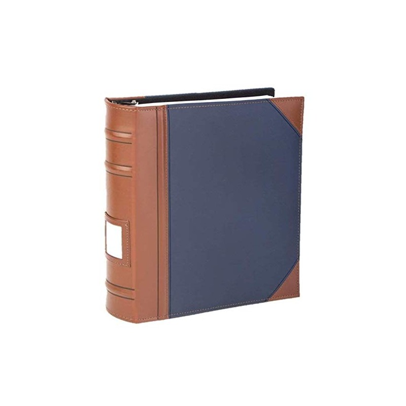Executive Binder, English Leather 2 Tone with Stitching and Ribbed Spine, Heavy Duty 3 D-Ring with Memo Tag, Blue (2" inch, 1PK)