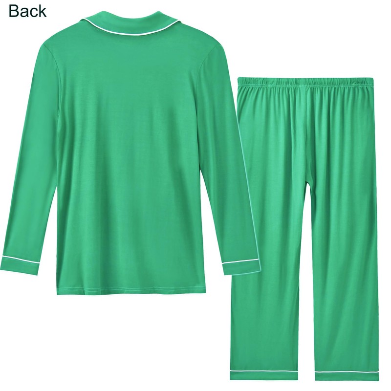 Exemaba Women Long Sleeve Pajama Set Modal Button Down 2-Piece Pjs Pants Sleepwear Lounge Set(Green,XL)