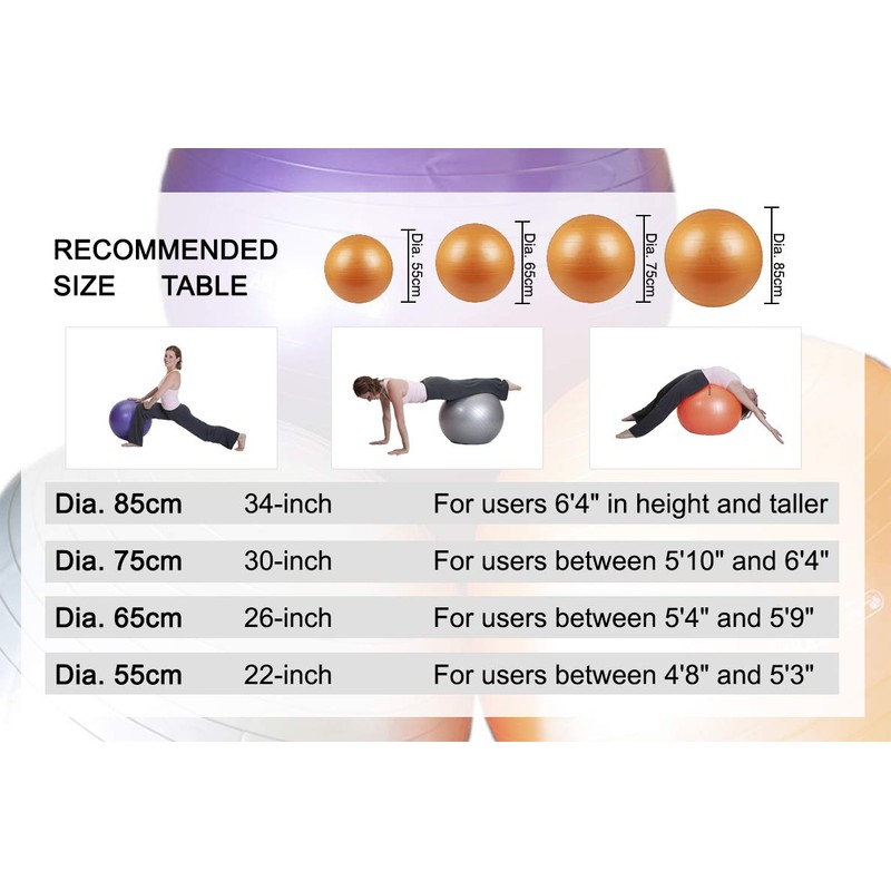 Exercise Ball (55-85cm) Duraform Yoga Ball, Burst Resistant Stability, Balance, and Pilate Supports 600lbs, with Hand Pump. (Purple, 75CM)