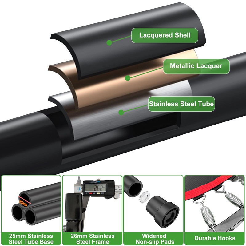 • Versatile Exercise Options - Not limited to basic up-and-down jumping, our trampoline is perfect for a wide range of dynamic movements, including rotations and flips. It serves as the ideal sports equipment for comprehensive whole-body workouts, allowing you to engage in various exercises and maximize your fitness potential