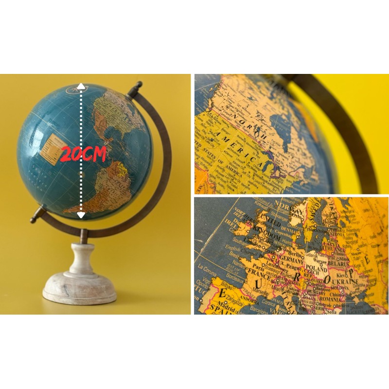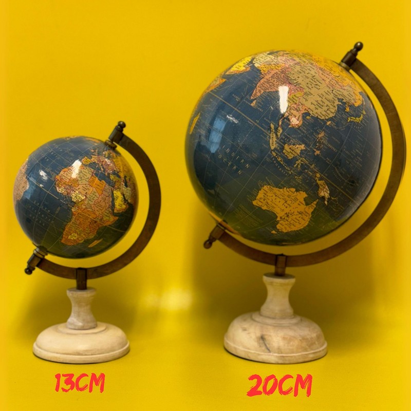 EXERZ 20cm Antique Globe Ocean Blue with a Wooden Base, Handcraft Decorative Globe (20cm)