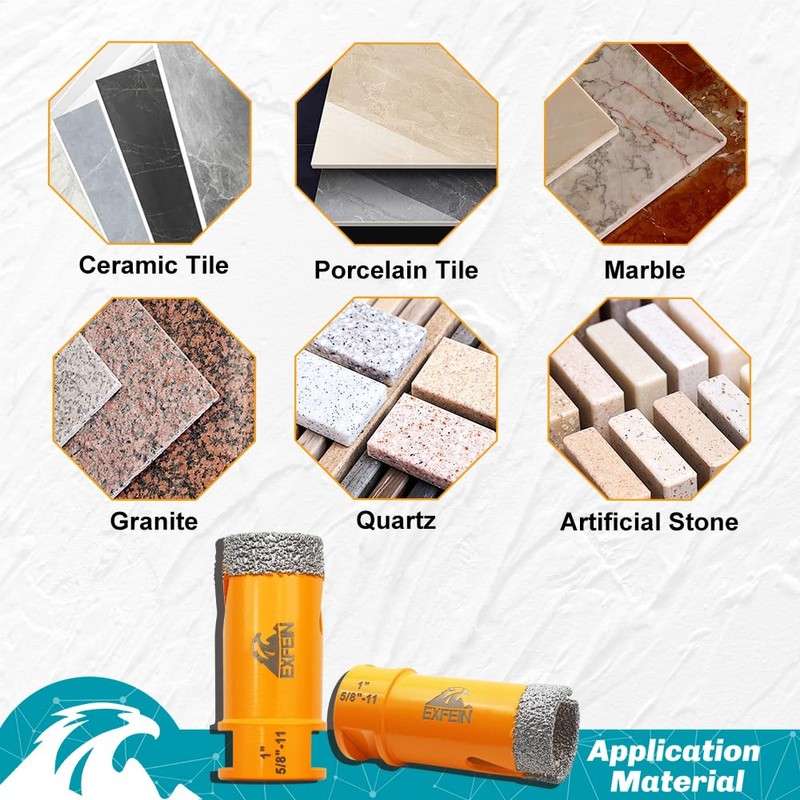 - 【Application】EXFEIN core drill bits are used to drilling holes for porcelain ceramic tile marble granite, etc. Dry or wet use. Wet drilling with less debris for longer life.