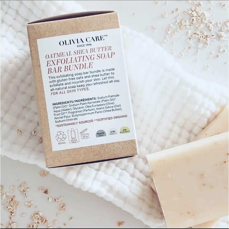 Olivia Care Exfoliating Bar Soap Pack by – 100% Natural & Organic - Infused with Shea Butter & Oats - Deep Clean, Refreshing, Moisturizing & Hydrating - Triple-Milled - X 5 OZ Oatmeal Shea Butter 3 Count (Pack of 3)