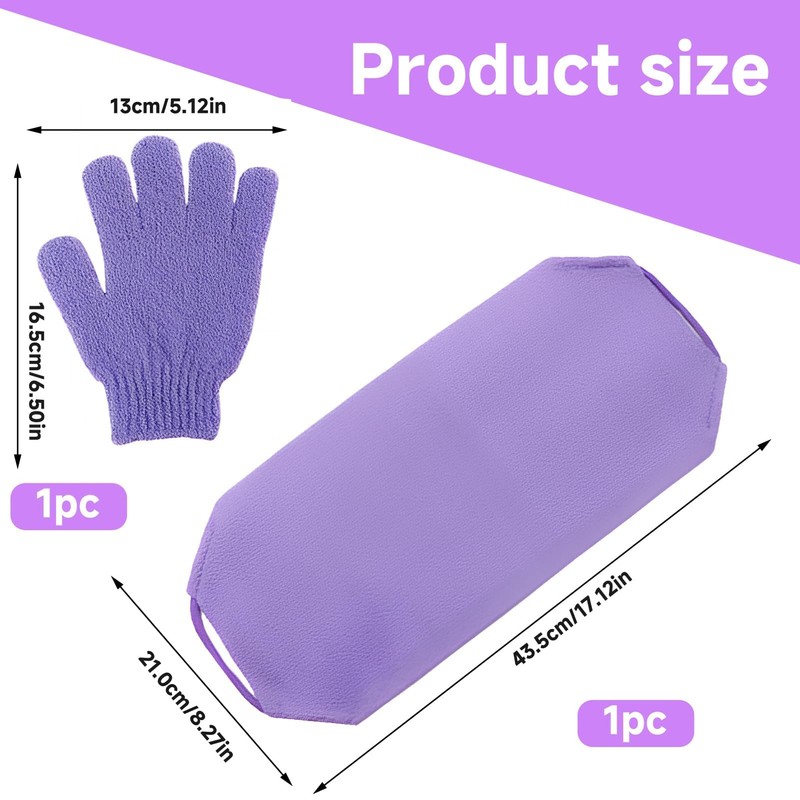 Exfoliating Glove and Towel Set, OIHCAZ Purple 2pcs Back Scrubber for Body Scrub, Back Arms, Thighs, Face Cleansing Exfoliating Mitt Uitable for Home Spa Care Bathing and Removing Dead Skin