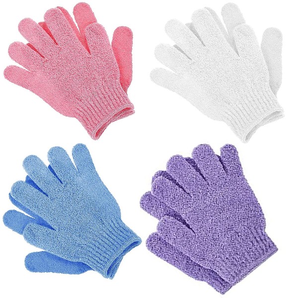 - 【Set includes】4 pairs of exfoliating scrubby bath gloves,There are 4 different colors(White / Purple / Blue / Pink)You can share it with your family and friends.