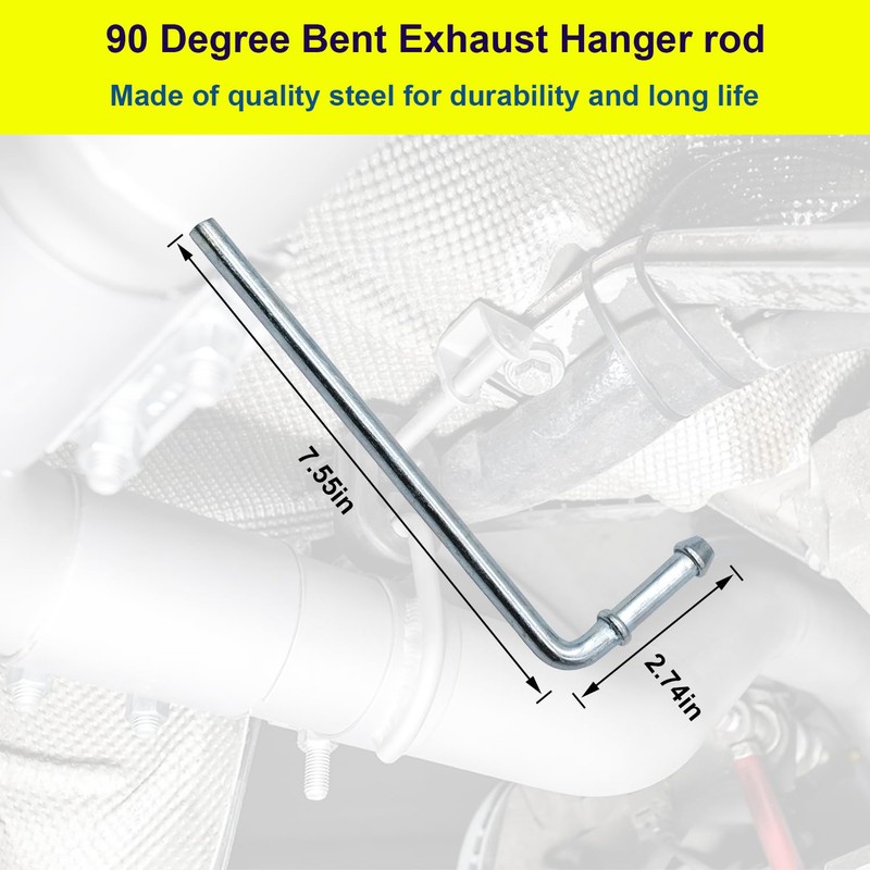 - [Premium Material]✔️Made of High-Density Rubber Compound Which Can Handle Heavy Stretch and Extrusion,Provide Extra Durability and Strength,Make Sure the Exhaust Insulator Hanger Anti-abrasive,Anti High Temperature and Not Easily Damage or Crack.The 90°Bend Rods and Swivel Style Exhaust Hanger With Clamps are Made of Low Carbon Steel- Zinc Coated For Corrosion Resistance.