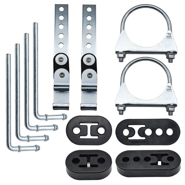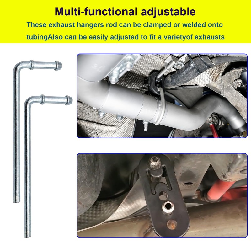 - [Powerful Function] ✔️The Rubber Exhaust Hanger and the 90°Bend Rods Can Decrease the Height of the Exhaust Pipe with the Car Body and Contact Surface.Absorb vibrations,Effectively Reduce the Shaking and Noise Made of Exhaust Pipe.Swivel Style Exhaust Hanger With Clamps Simplify Rotates to Match the Exhaust Pipe or Muffler Neck.