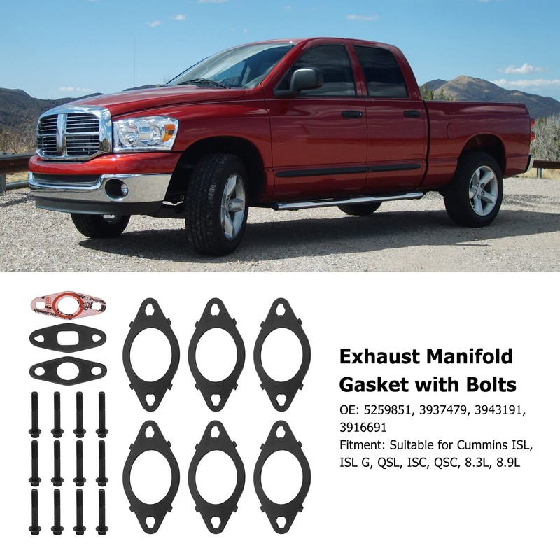 • 【Fitment】This exhaust manifold gasket bolts kit is compatible with Cummins ISL ISL G QSL ISC QSC 8.3L 8.9L, ideal to replace the old or broken one, please check the model and year before purchase to confirm compatibility