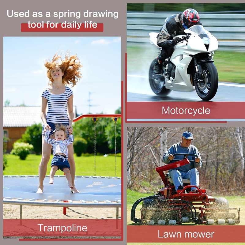 - Quick spring assembly and disassembly: Sometimes the spring is too tight for motorcycle exhaust spring repair or is not clean with oil dirt. You need an exhaust spring hook. With this you can quickly assemble and disassemble the exhaust spring with less force, and you will not be easily soiled by the oil dirt. This makes work more efficient and convenient. You can also use this spring puller for trampoline spring.