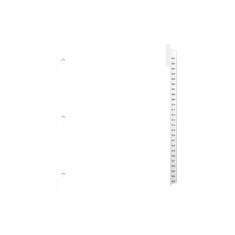 Exhibitindexes® 3 Hole Punched Side Collated Exhibit Tabs - AVE Style Bold Tabs Letter Size - 601-625-Set