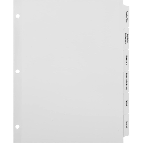 - Set of 6 tabs for your estate planning binder