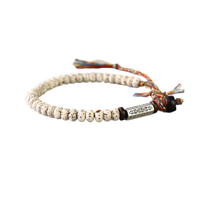 EXINOX Handmade Tibetan Natural Bodhi Bead Bracelet with Engraved Lucky Charm Handmade Lucky Thread I Man Woman, cuentas bodhi Algodon