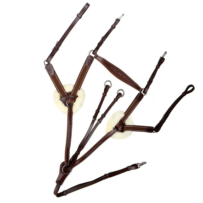 Exion 5-Point Horse Breastplate with Running Martingale | Real Sheepskin Linned | Oak Brown Elastic | Vegetable-Tanned Leather