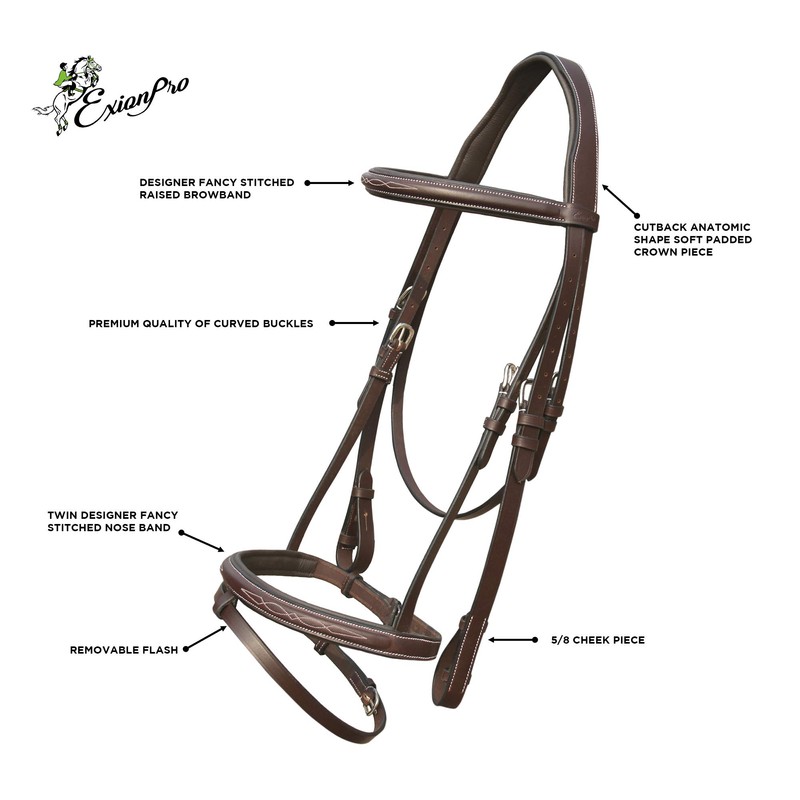 Exion Designer Stitched English Jumping Bridle for Horses with Rubber Reins | Premium Comfort & Durability for Equestrian Riders