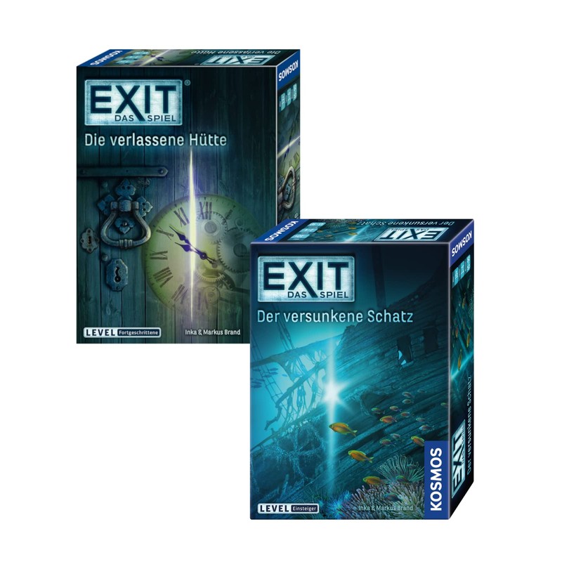 Exit Kosmos Spiele 694050 Game: Sunken Treasure Board Game + Cosmos Games 692681 Game, The Abandoned Hut; 2 Escape Room Games for Home, Level Beginners and Advanced Players