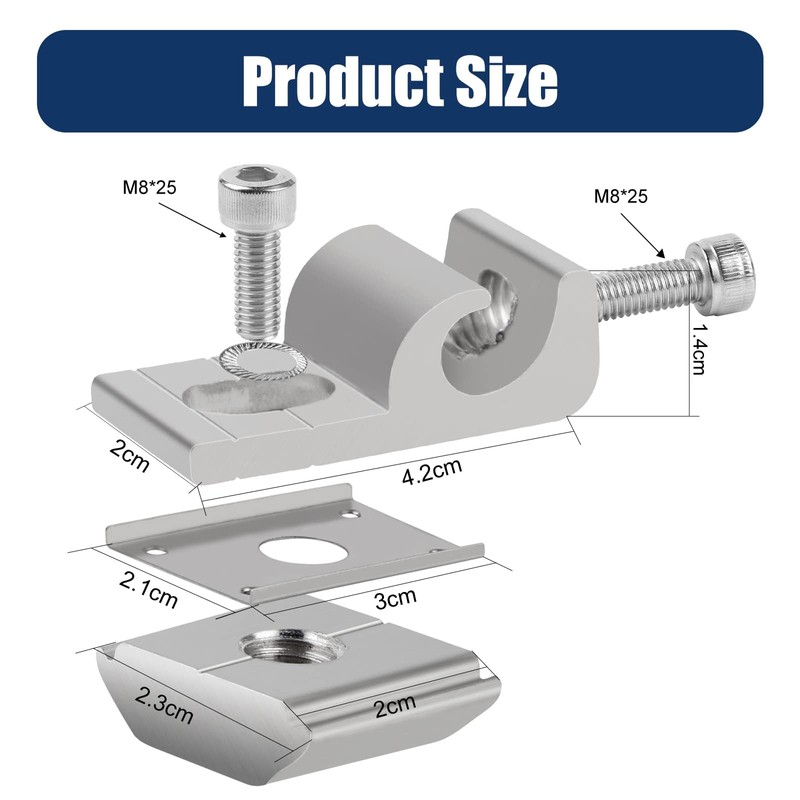 - High-quality material: Our solar clamp is made of solid aluminium, which is lightweight, corrosion-resistant and high strength and reduces the risk of weather influences. It can be used in high temperatures, cold or humidity, reducing maintenance and replacement costs. The screws run stably, and the ground seals ensure good contact with the rail.