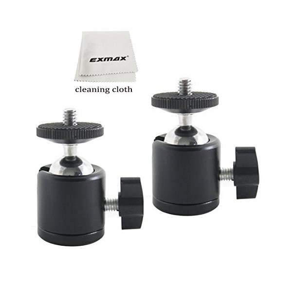 EXMAX 360 Degree Swivel Mini Tripod Ball Head with 1/4” Screw Thread Base for DSLR Camera Camcorder LED Light Tripod Monopod Bracket Compatible with HTC Vive Gopro - 2 Pack Black