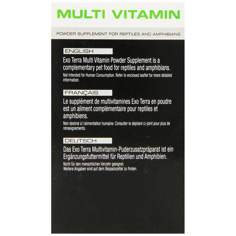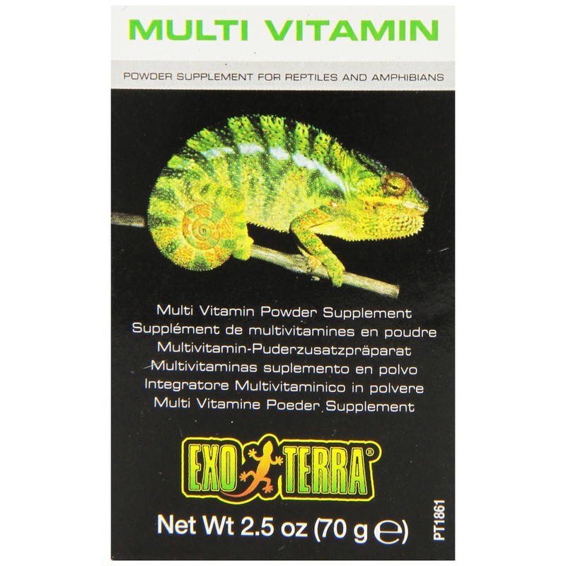 Most reptiles and amphibians are unable to obtain the essential vitamins and trace minerals that they require from a captive diet. Exon Terra Multi Vitamin Powder Supplement is formulated to meet the nutritional needs of reptiles and amphibians in conjunction with their daily diet.\n\nit contains precise levels of vitamins, amino acids and trace elements that are essential for energy production, growth, maintenance, reproduction and many other bodily functions.