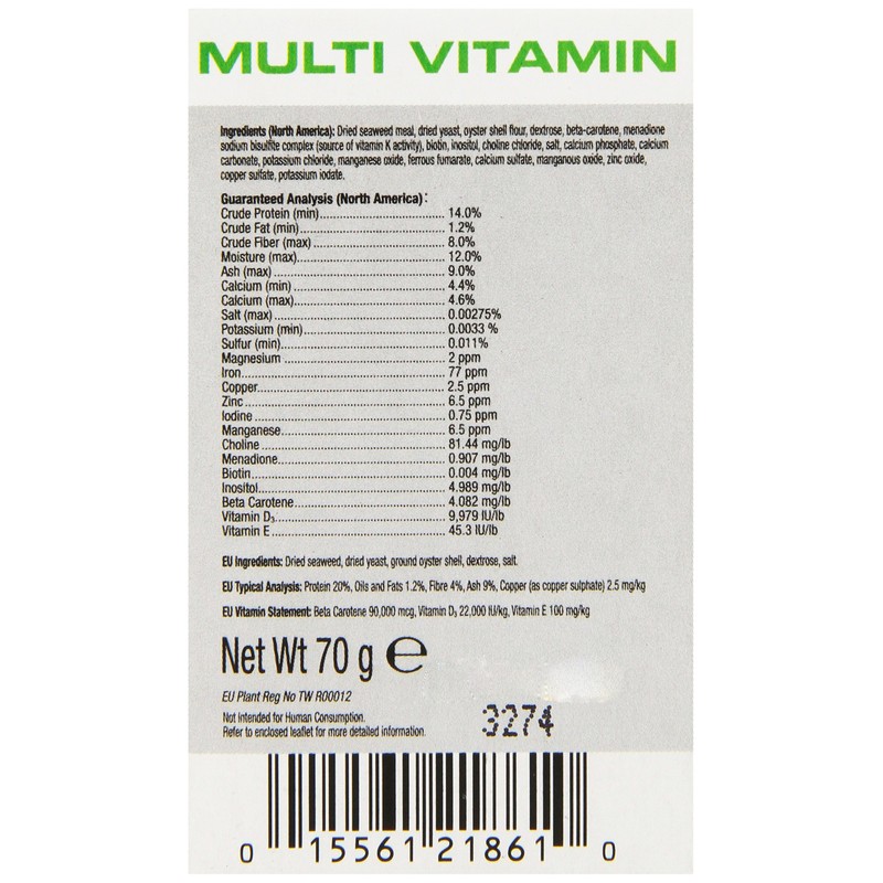 - Multi vitamin supplement for reptiles and amphibians stimulates growth, reproduction and other vital bodily functions