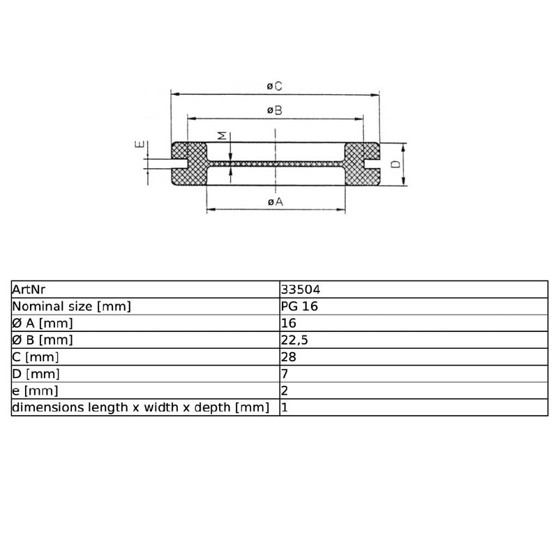 - Rubber cable grommet, diameter of the membrane: 16 mm